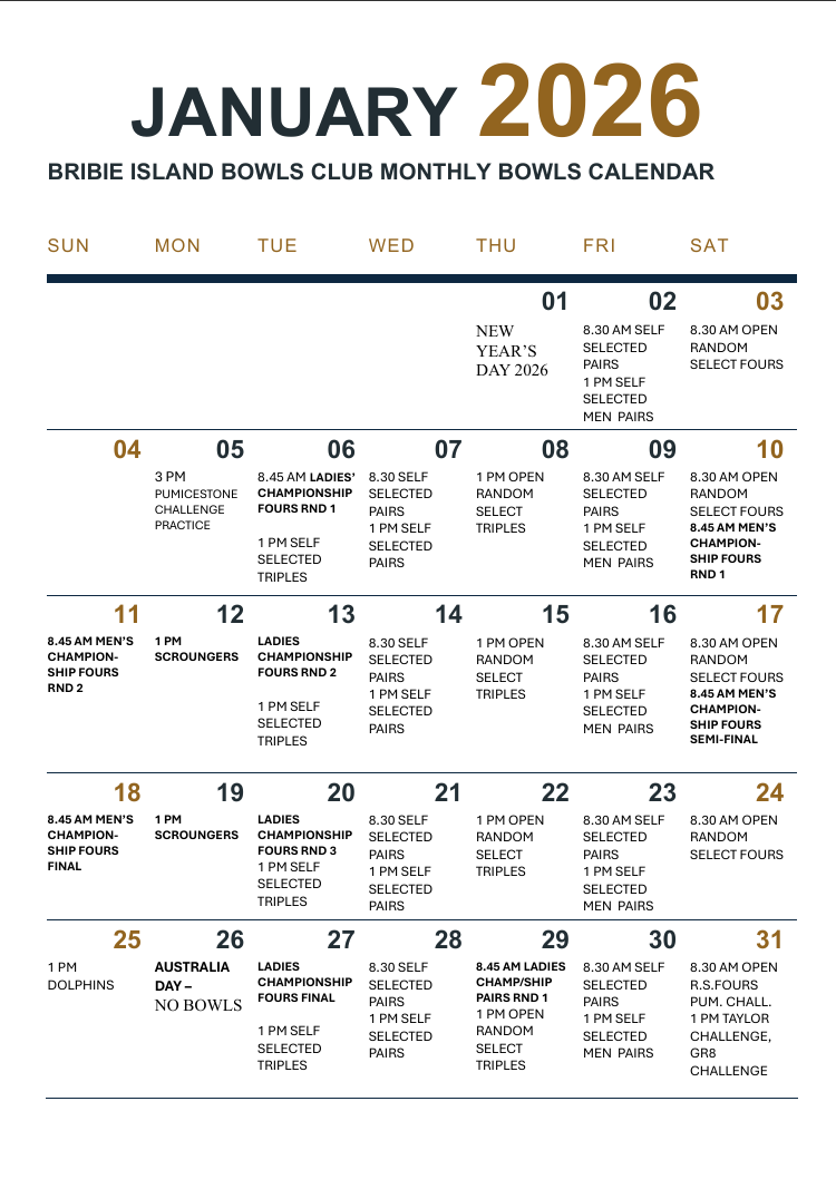 2026 Bowls Calendar